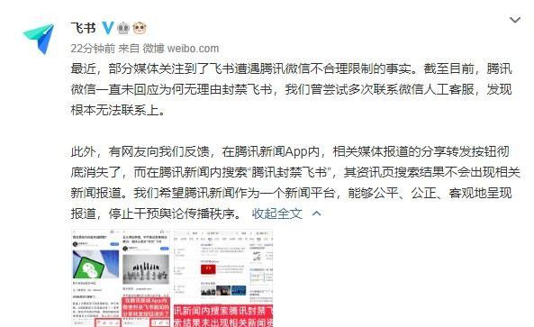 飛書再發(fā)文:曾多次聯(lián)系微信人工客服 但根本聯(lián)系不上