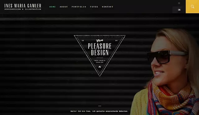 Ines Maria Gamler網(wǎng)站中展示的女性正側(cè)著臉,雙眼注視網(wǎng)站中間的文字。打開(kāi)網(wǎng)站時(shí),大多數(shù)人會(huì)首先關(guān)注人物的臉部,并進(jìn)一步受到人物視線的引導(dǎo)。