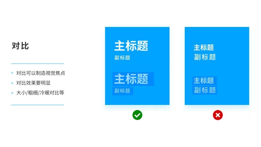 不管是哪種對比,當(dāng)你期望對比效果有效的話,需要大膽一些,明顯一些,不要拿12號和13的文字做大小對比,這是沒有任何意義的,不要畏畏縮縮,做設(shè)計也是一樣。