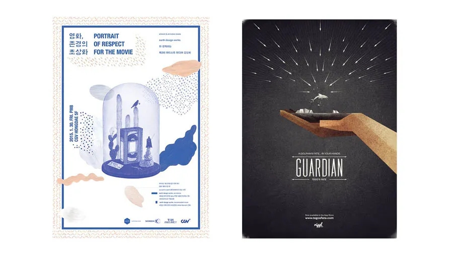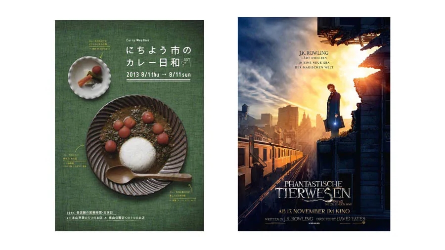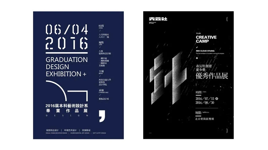 左邊的海報采用了矩形構(gòu)圖,右邊的海報采用了二分構(gòu)圖,但是文案都是找到了一條明確清晰的對齊線,這樣讓版面產(chǎn)生了秩序美。