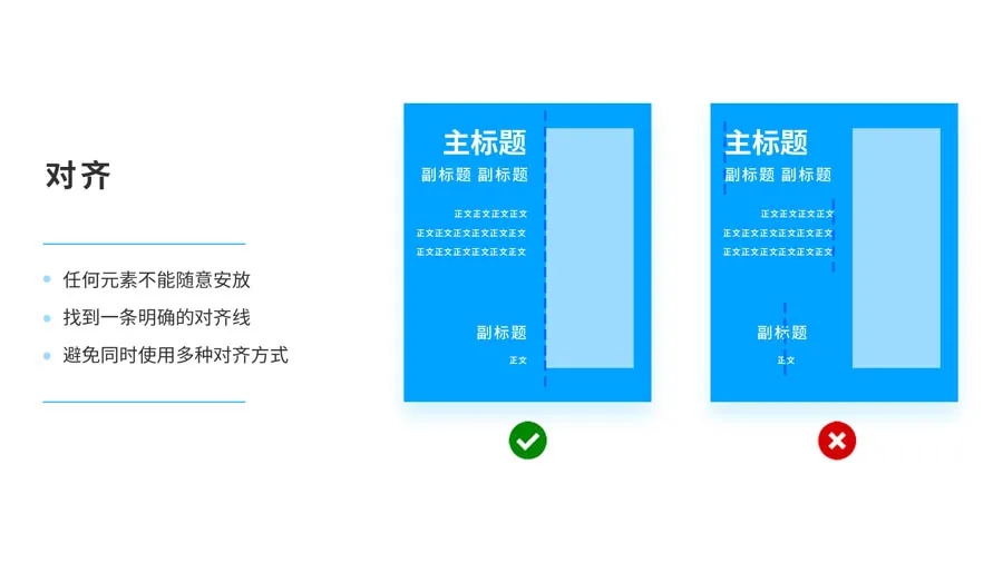任何元素都不能在版面上隨意安放。每一項都應(yīng)當(dāng)與頁面上的某個內(nèi)容存在某種視覺聯(lián)系。在版面上找到可以對齊的元素,盡管它們可能距離比較遠(yuǎn)。需要注意的地方是避免同時使用多種對齊方式。