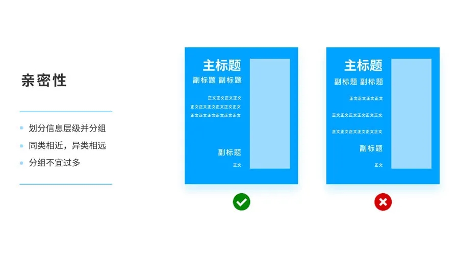 同類相近,異類相遠(yuǎn),相關(guān)的元素距離靠近,歸組在一起,成為一個視覺單位,而不是多個孤立分散的狀態(tài),這樣有助于組織信息,減少混亂,讓結(jié)構(gòu)變得更清晰。根據(jù)文案內(nèi)容,進(jìn)行合理的分組和歸類。
