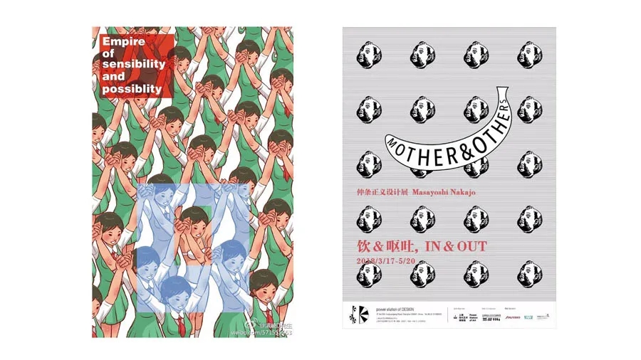 這個具有沖擊感的形象其實(shí)和這次展覽主題“飲&嘔吐”呼應(yīng)的,設(shè)計師想表達(dá)仲條正義的創(chuàng)作于人生,正如這個重復(fù)的形象,不斷吸收,不斷推翻,最后不斷創(chuàng)造。