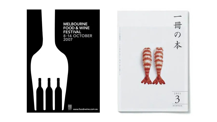 左邊在留白的同時,利用了負(fù)空間巧妙的將海報的主題“美食”和“美酒”結(jié)合起來。