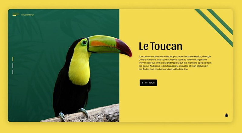 巨嘴鳥似乎屬于綠色區(qū)域,但在黃色區(qū)域中溢出。