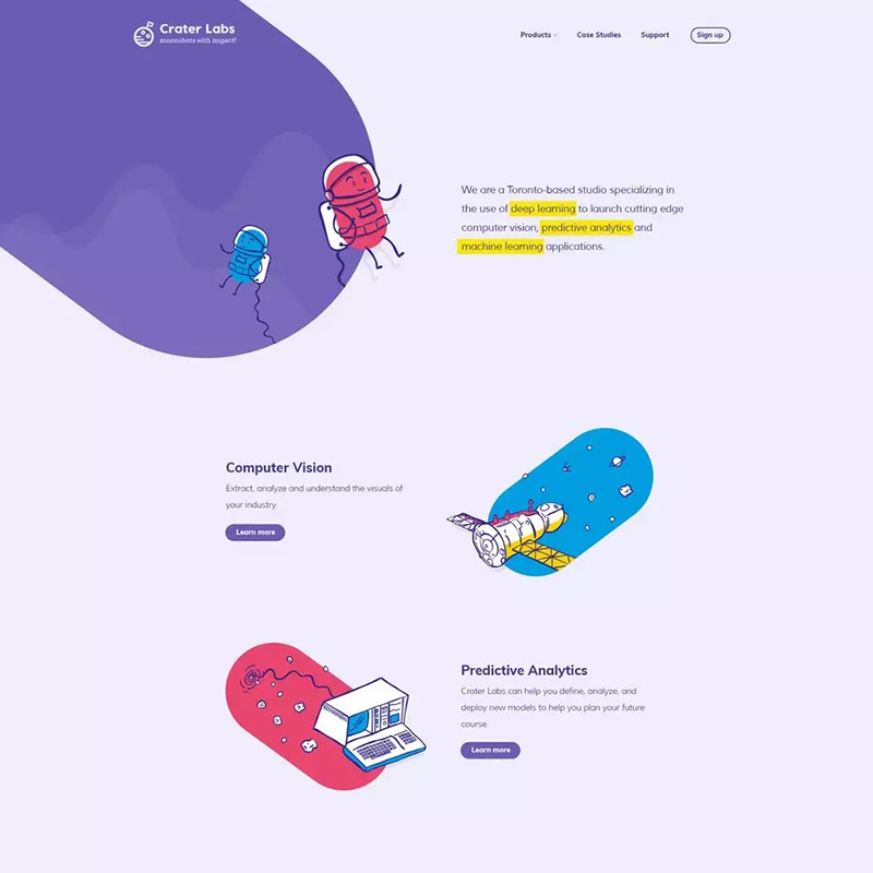 定制插畫真是很棒的選擇,簡直是網(wǎng)頁設(shè)計(jì)的萬用法寶。它會讓網(wǎng)站充滿樂趣,可玩性,更親近用戶。有經(jīng)驗(yàn)的創(chuàng)作者會整體考量品牌的特點(diǎn),制作出充滿個(gè)性,又跟品牌特點(diǎn)完全契合的插圖。而這些定制插圖制作出的網(wǎng)站也證明會為品牌帶來豐厚的商業(yè)收益,無論是什么樣的品牌,總有一款為你量身定做的插畫。